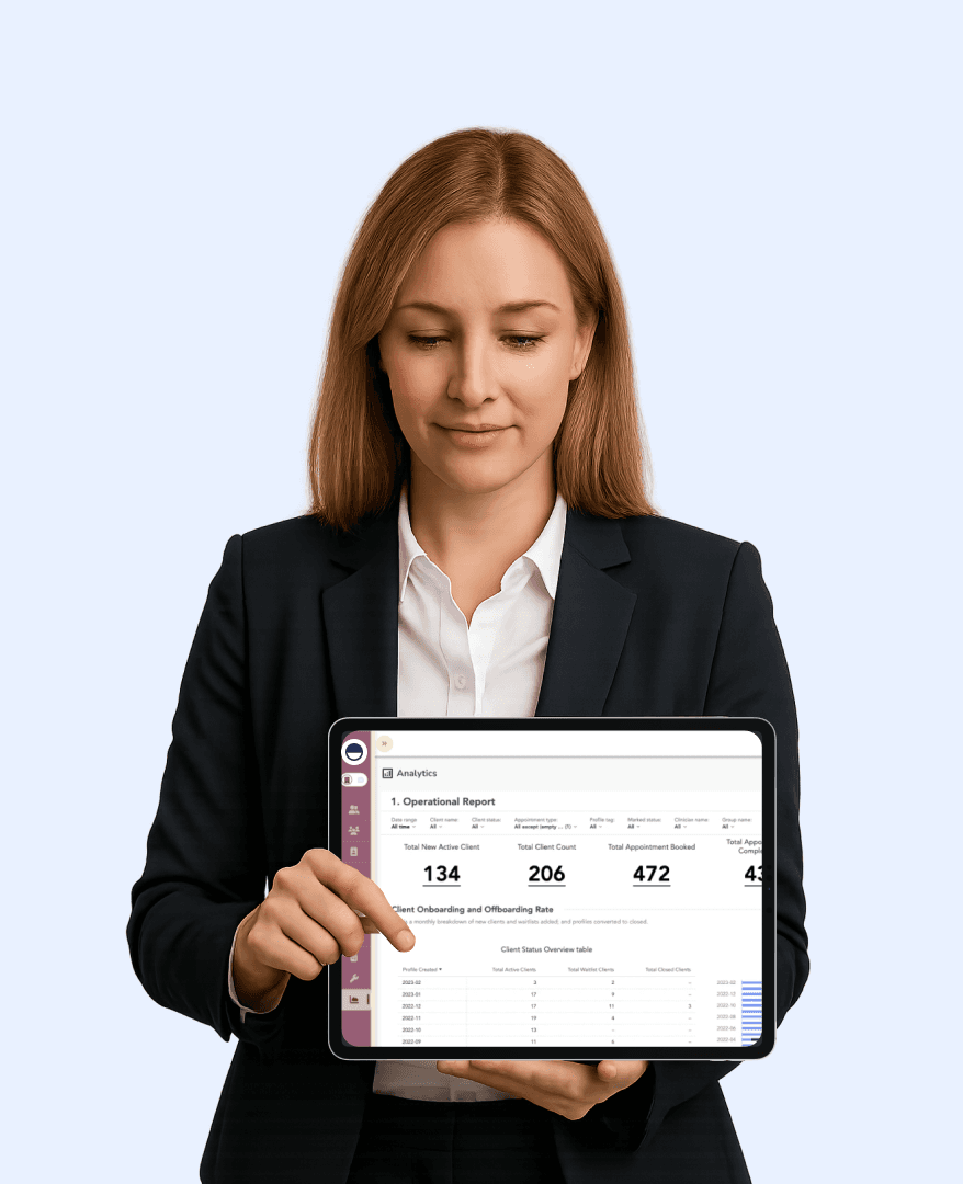 Track critical indicators like client journey progress, wait times, and engagement trends to drive continuous improvement.