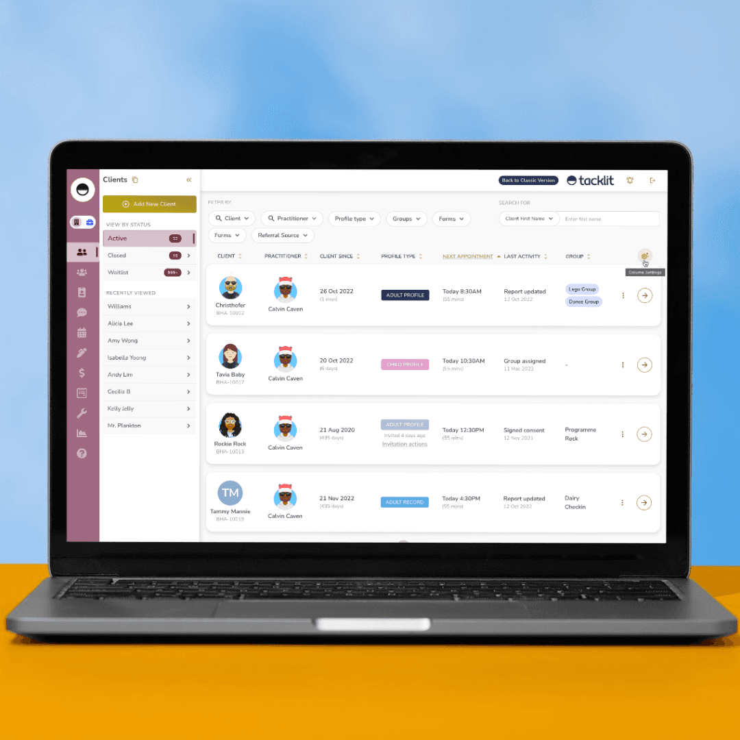 Tacklit’s approach to client registration solves these problems by centralising all client data in one secure platform. Our system automates the intake process for online registrations, reducing the time staff spends on manual data entry and minimising errors associated with duplicate records or miscommunication.