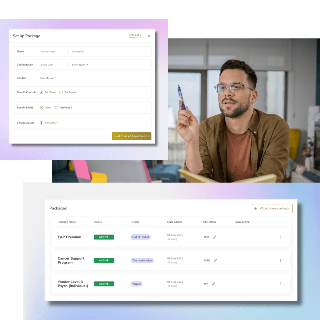 Care packages in mental health practice management are structured bundles of services designed to meet specific contractual or funder requirements. At Tacklit, we define care packages as customizable bundles that control service delivery and acceptance criteria to prevent over-servicing and ensure accountability.