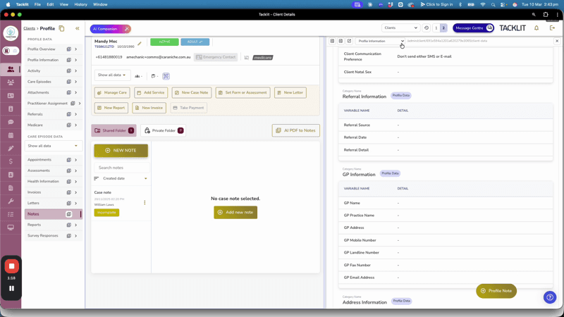 ⚠️ Some variables that sync to the client’s profile (i.e. client’s name, contact information, Medicare information) cannot be added to the case note template