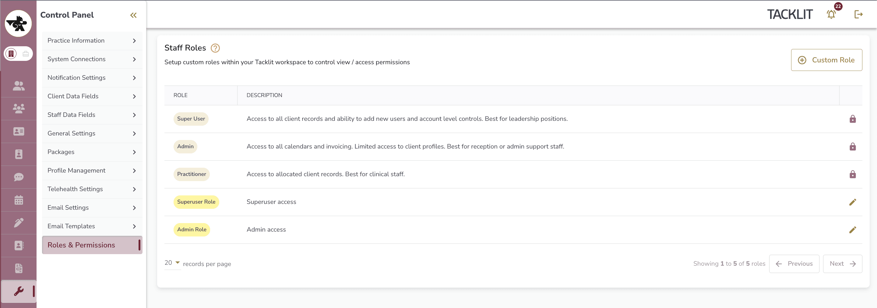 Existing clinicians can be switched to a custom role at any time — no need to recreate accounts.
